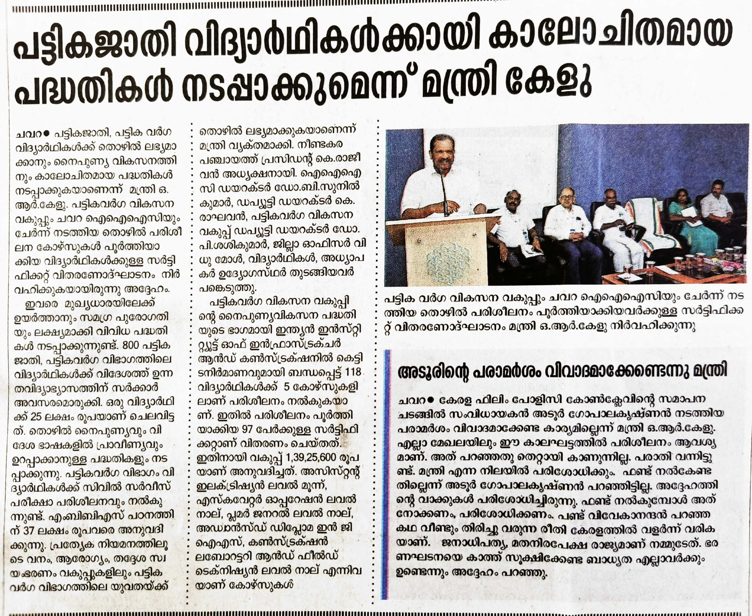 The Indian Institute of Infrastructure and Construction (IIIC) serves as a distinguished centre for skill development training, bridging the gap for aspiring youth and empowering working professionals to advance their careers. Established as a ‘Centre of Excellence’ by the Kerala Academy for Skills Excellence (KASE) under the Department of Labour and Skills of the Government of Kerala, IIIC offers industry-aligned training programs that equip individuals with the necessary skills for success.